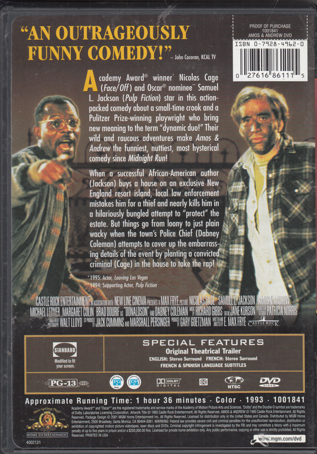 | Titolo: | Amos & Andrew – Nicolas Cage (Edizione Stati Uniti) – NTSC – DVD in Inglese |