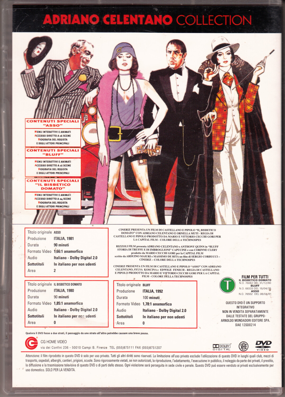 | Titolo: | Bluff, Asso, Il Bisbetico Domato. Adriano Celentano Collection con n. 3 DVD in Italiano. Versione da edicola |