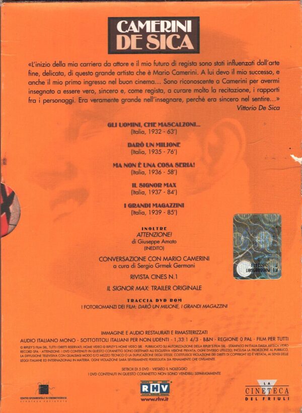 | Titolo: | Camerini / De Sica – Edizione Speciale (5 DVD) con Cofanetto – DVD in Italiano |