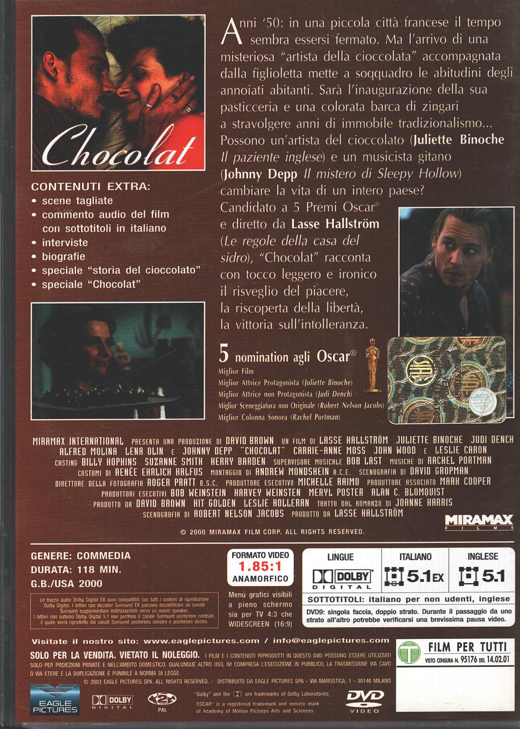 Chocolat. Un film con Jonny Depp e Juliette Binoche. Versione da edicola. DVD in Italiano