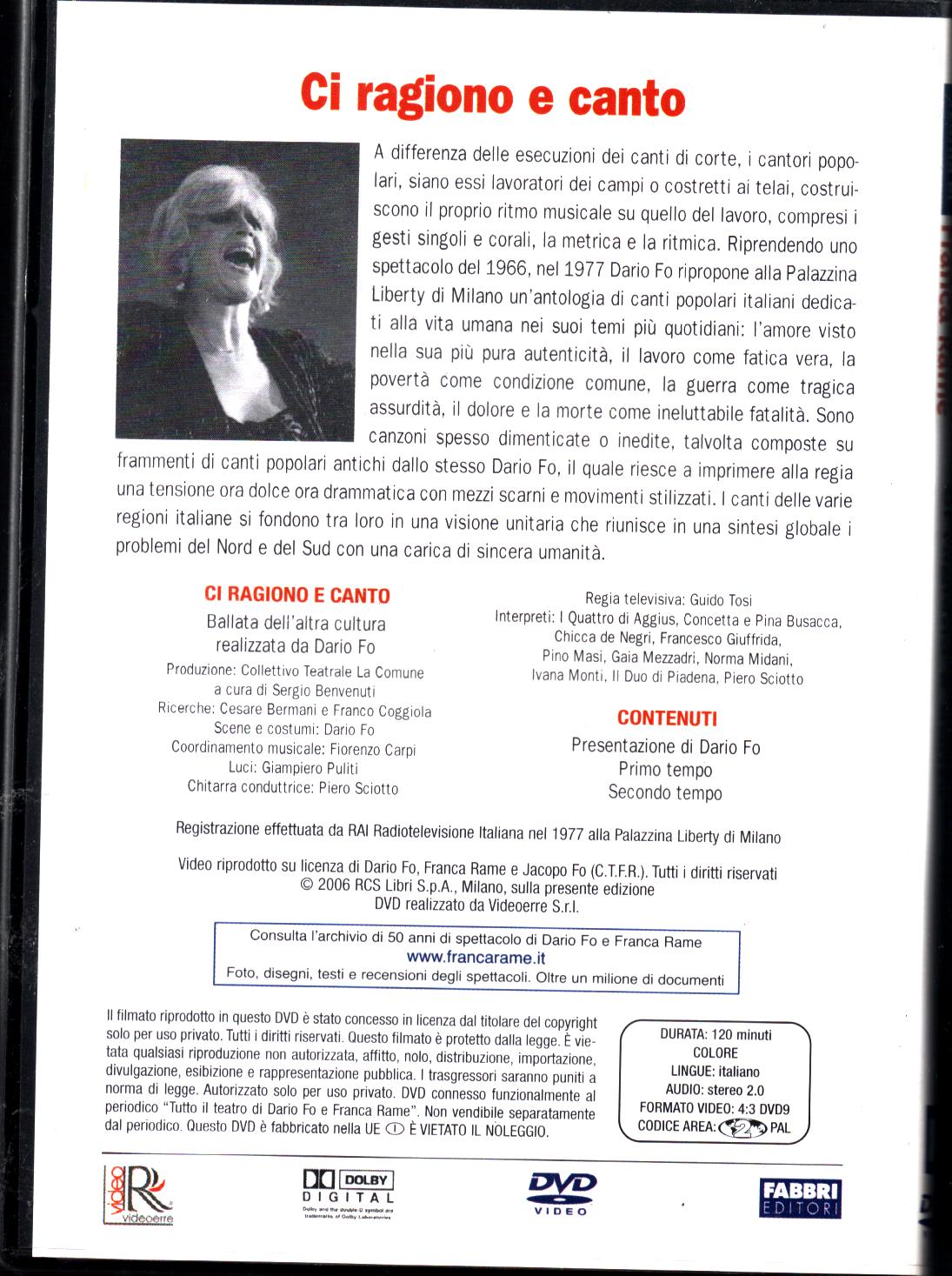 Ci ragiono e canto. Tutto il teatro di Dario Fo e Franca Rame. DVD in italiano. Versione da edicola