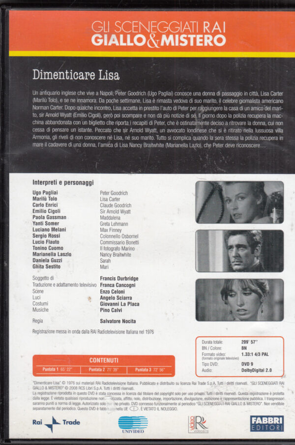 | Titolo: | Dimenticare Lisa – Miniserie TV Completa (Episodi 1-3) DVD in Italiano – Sceneggiati Rai Giallo e Mistero – Versione da edicola |
