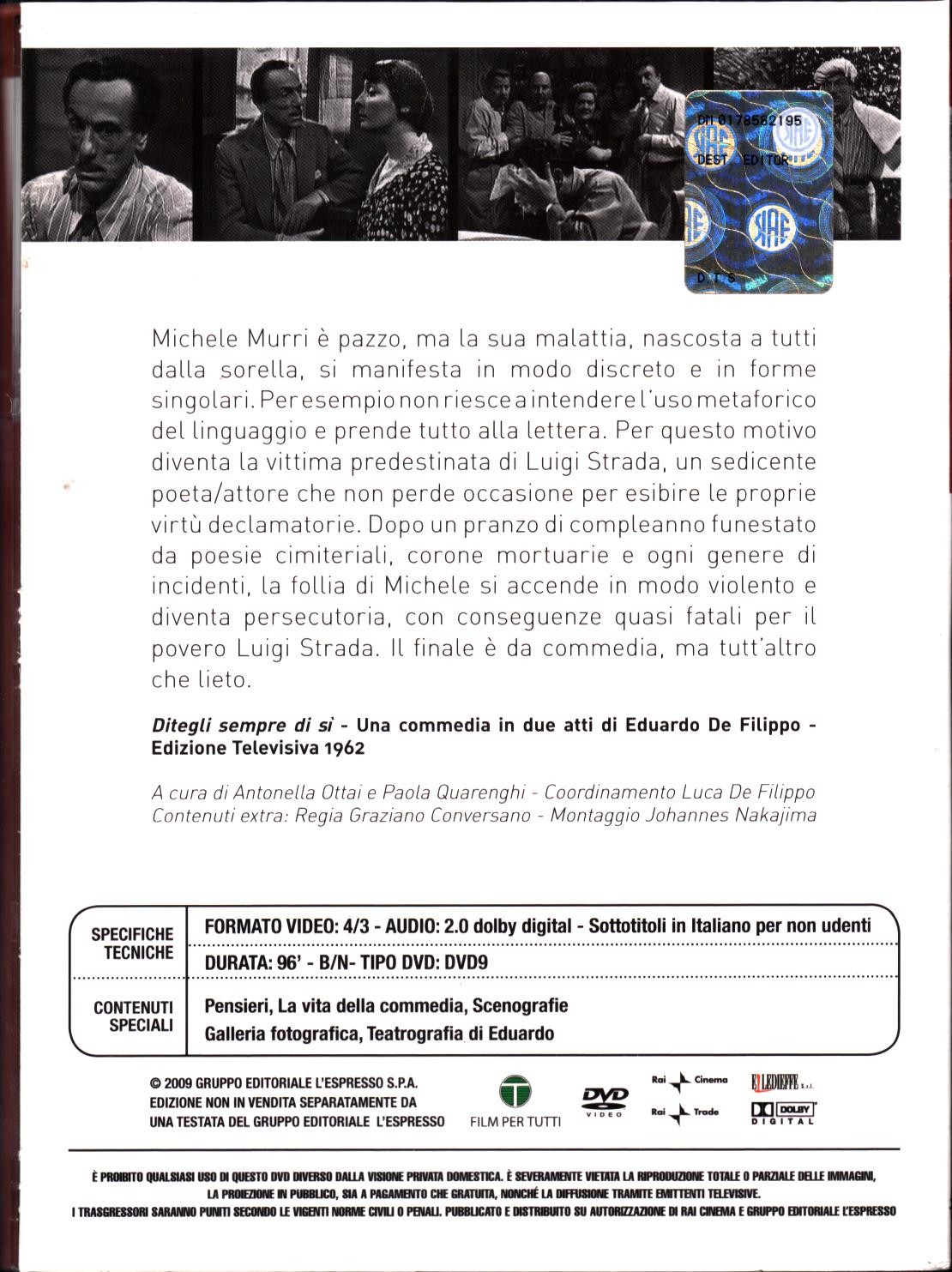 Ditegli sempre di si – DVD Le Commedie di Eduardo De Filippo vol. 10 – Versione da edicola – DVD in Italiano