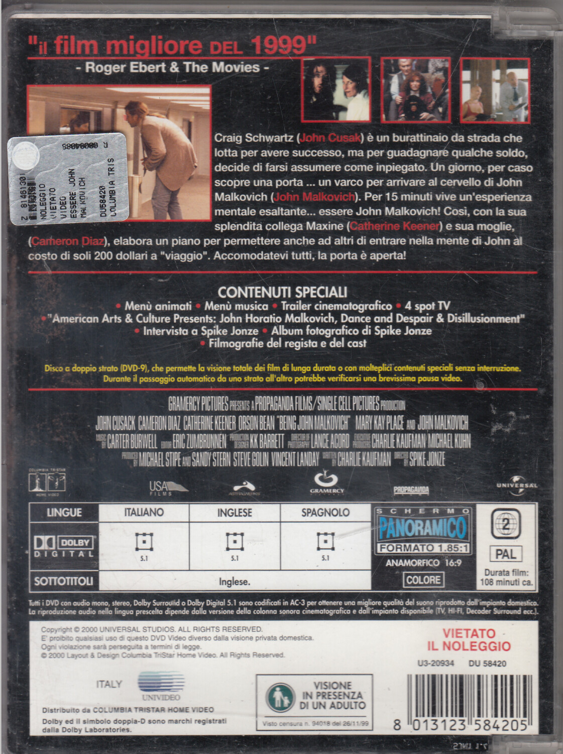 Essere John Malkovich – DVD in Italiano. Custodia Jewel Box.