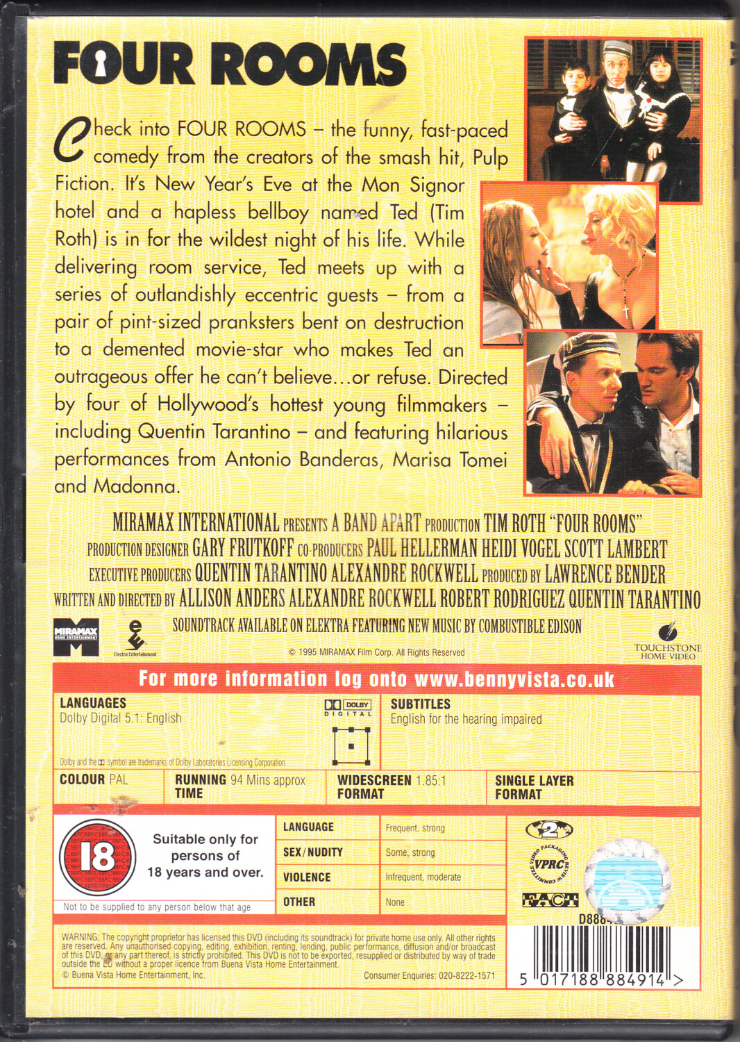 | Titolo: | Four Rooms – Quentin Tarantino (Edizione Regno Unito) DVD in Inglese |
