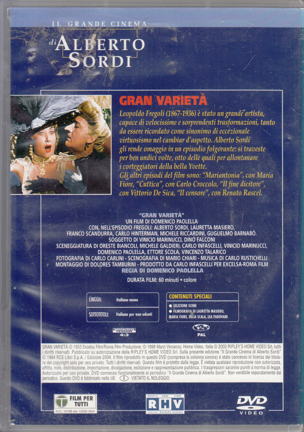 | Titolo: | Gran varietà (Il grande Cinema di Alberto Sordi) – Versione da edicola. DVD in Italiano |