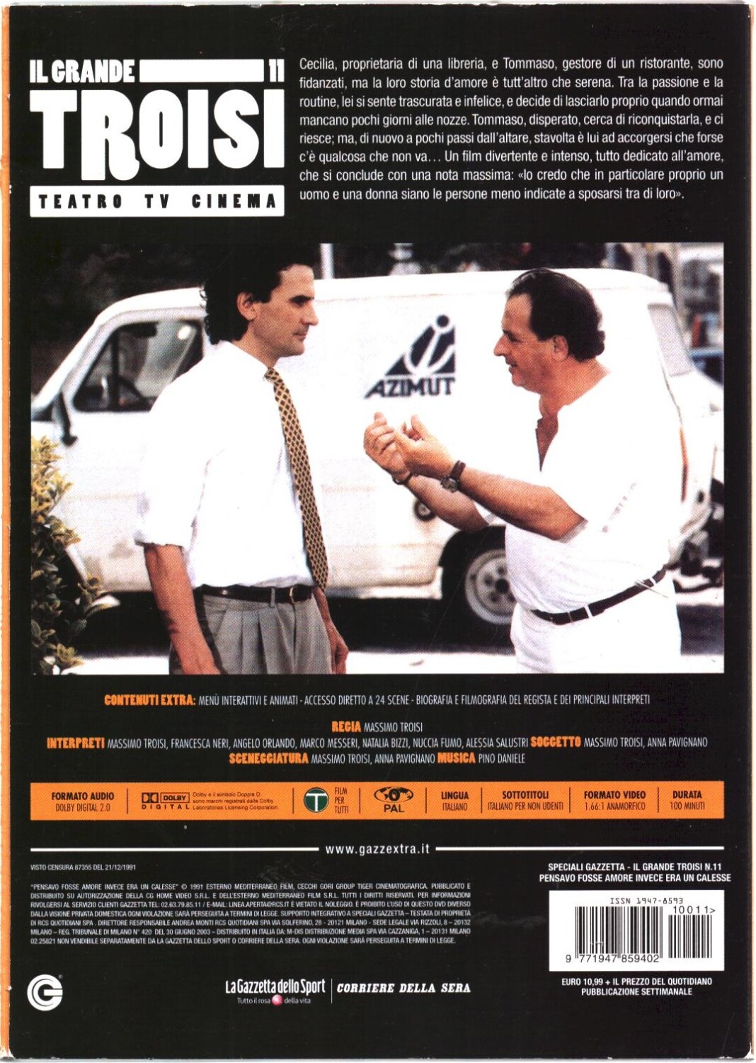| Descrizione: | Lista dei 18 titoli inclusi: 1- LA SMORFIA PRIMA PARTE; 2- LA SMORFIA SECONDA PARTE; 3- LA SMORFIA TERZA PARTE; 4- MASSIMO TROISI.DIARIO TV PRIMA PARTE; 5- MASSIMO TROISI.DIARIO TV SECONDA PARTE; 6- MASSIMO TROISI.DIARIO TV TERZA PARTE; 7- MASSIMO TROISI.DIARIO TV QUARTA PARTE; 8- RICOMINCIO DA TRE; 9- NON CI RESTA CHE PIANGERE; 10- IL POSTINO; 11- PENSAVO FOSSE AMORE INVECE ERA UN CALESSE; 12- SCUSATE IL RITARDO; 13- LE VIE DEL SIGNORE SONO FINITE; 14- IL VIAGGIO DI CAPITAN FRACASSA; 15- NO GRAZIE,IL CAFFE’ MI RENDE NERVOSO; 16- CHE ORA E’; 17- SPLENDOR; 18- HOTEL COLONIAL. |