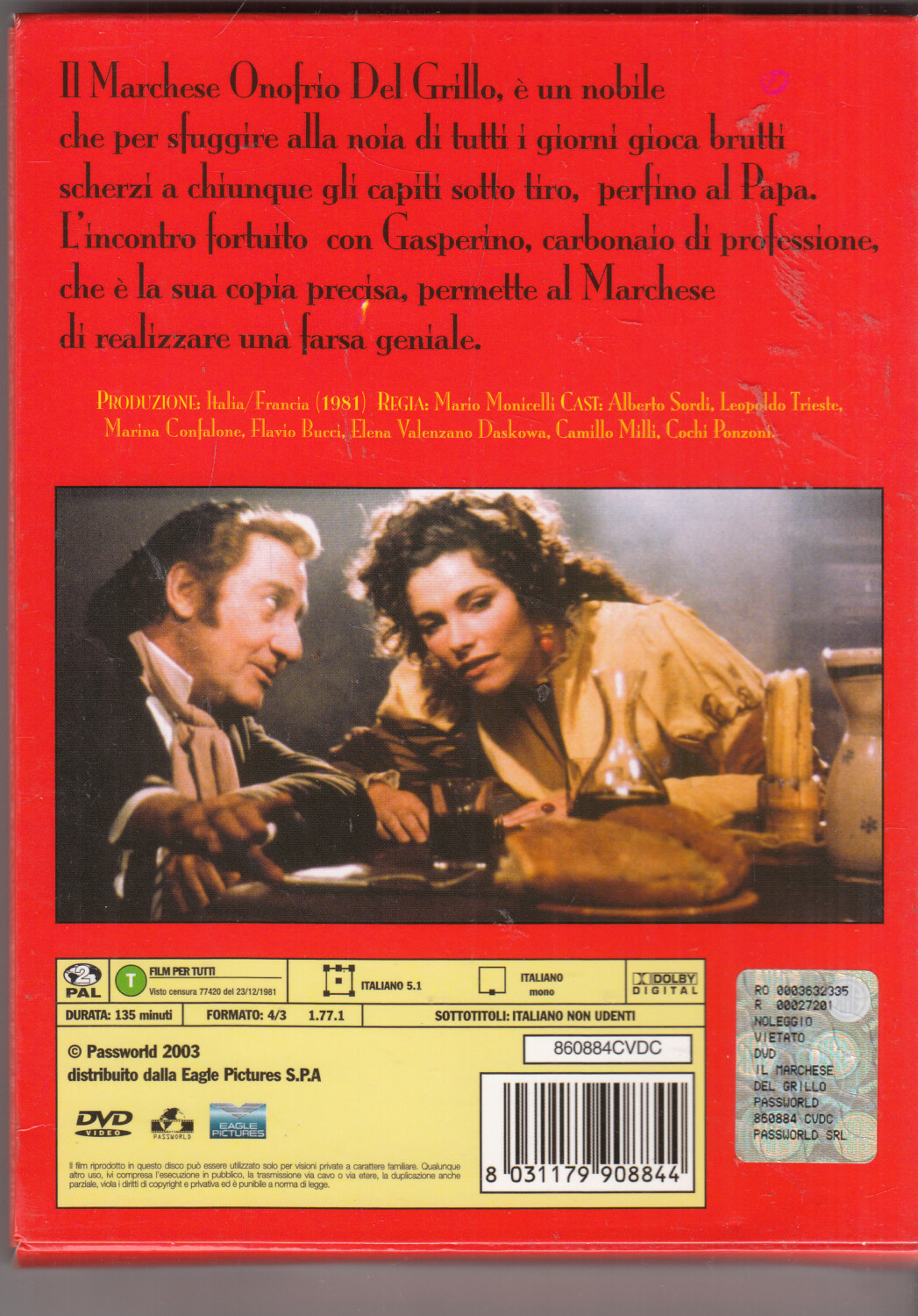 | Titolo: | Il Marchese Del Grillo con Alberto Sordi. DVD in Italiano con Cofanetto |