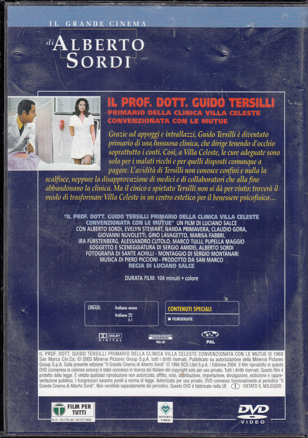 | Titolo: | Il Prof. Dott. Guido Tersilli primario della clinica…. con Alberto Sordi. DVD in Italiano. Versione da edicola |