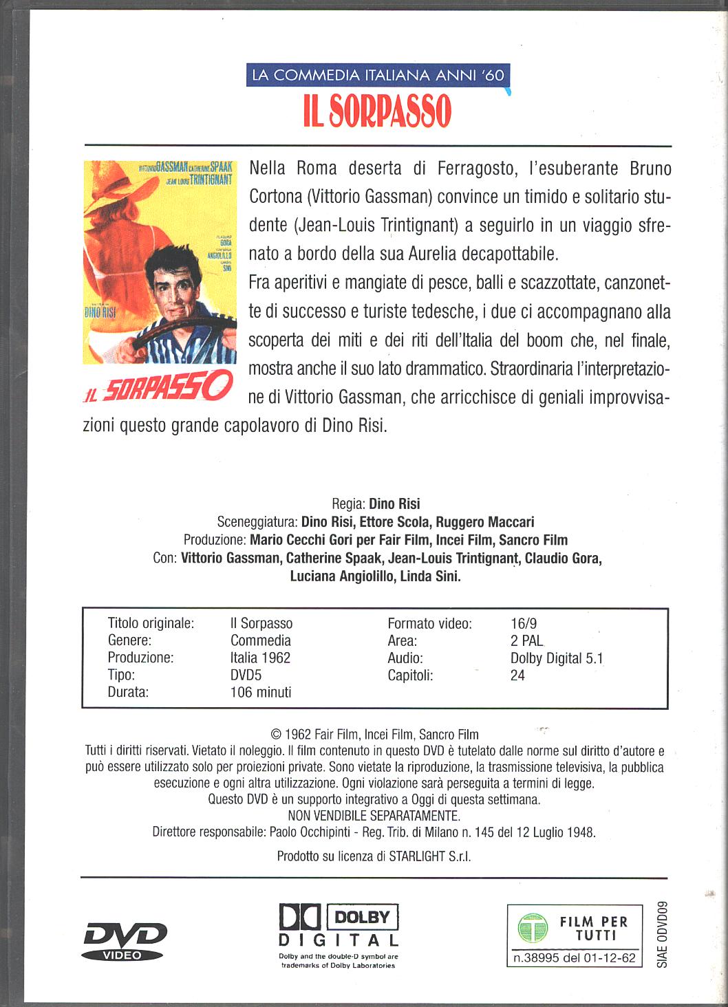 | Titolo: | Il sorpasso un film con Vittorio Gassman e Jean Louis Trintignant. DVD in Italiano. Versione da edicola |
