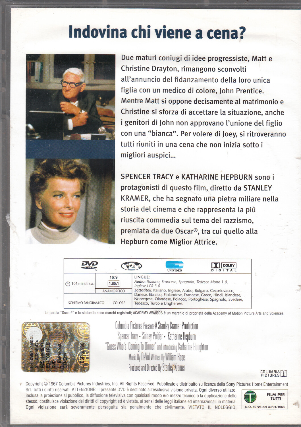 Indovina chi viene a cena? con Spercer Tracy e Katharine Hepburn. DVD in Italiano. Versione da edicola