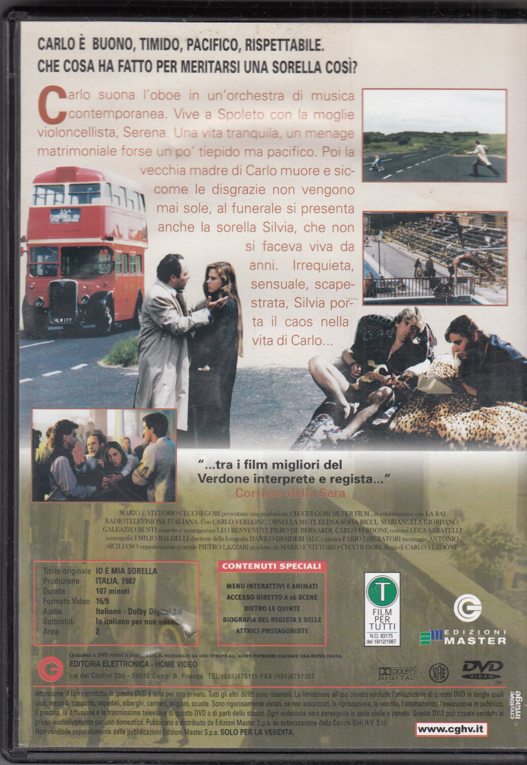 | Titolo: | Io e mia sorella con Carlo Verdone, Ornella Muti. Carlo Verdone Collection vol. 8. DVD in Italiano. Versione da edicola |