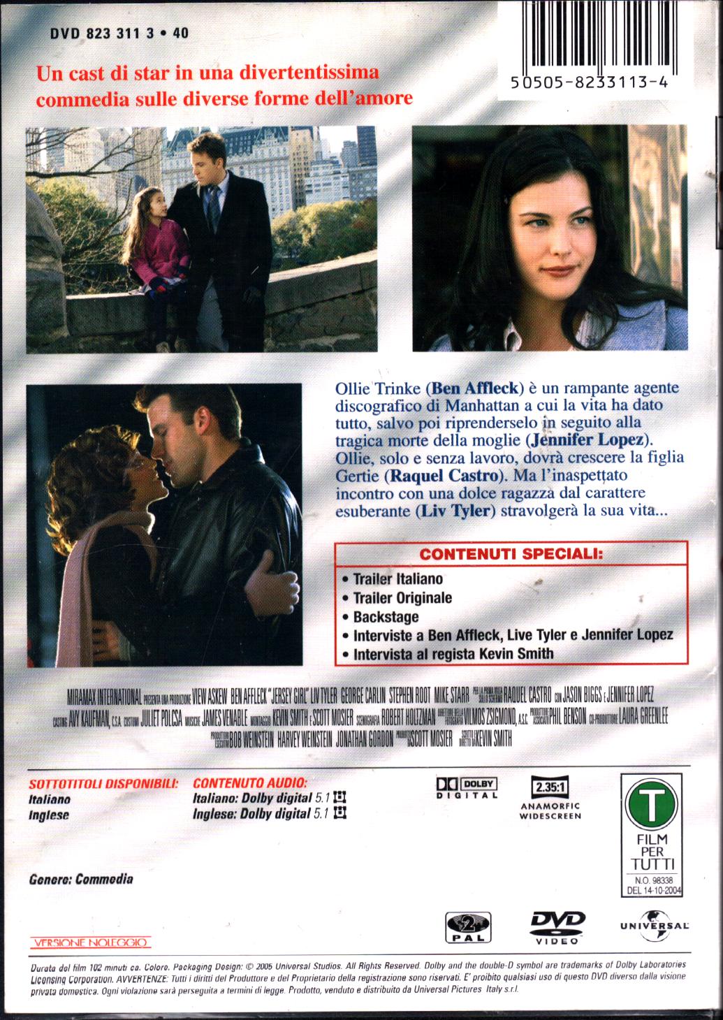 | Descrizione: | JERSEY GIRL – AFFLECK/TYLER/LOPEZ – DVD DVD |