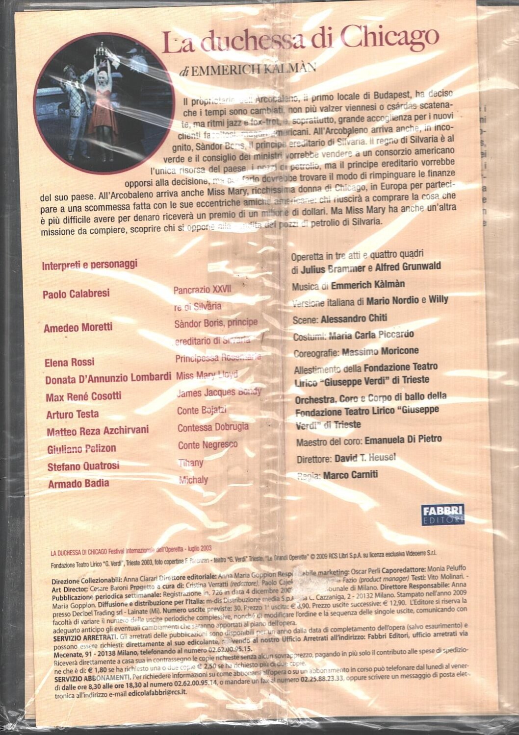 | Titolo: | La Duchessa di Chicago (Emmerich Kalman) – DVD Le Grandi Operette – Versione da edicola – DVD in Italiano |