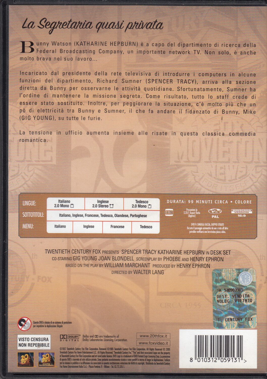 | Titolo: | La segretaria quasi privata con Spencer Tracy, Katharine Hepburn. DVD in Italiano SENZA Slipcase |