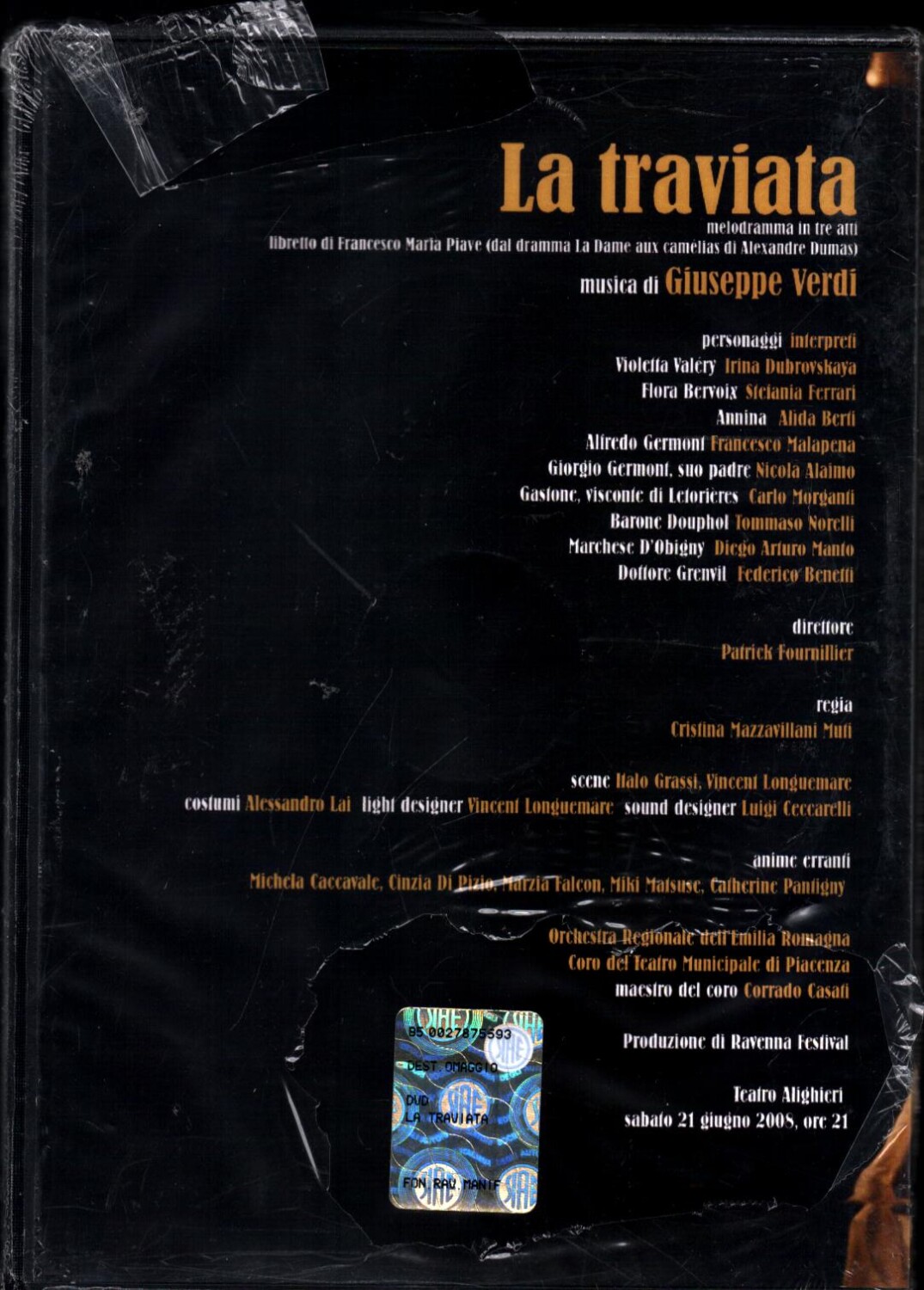 | Titolo: | La traviata Ravenna Festival 2008 DVD in Italiano Versione da edicola Giuseppe Verdi |