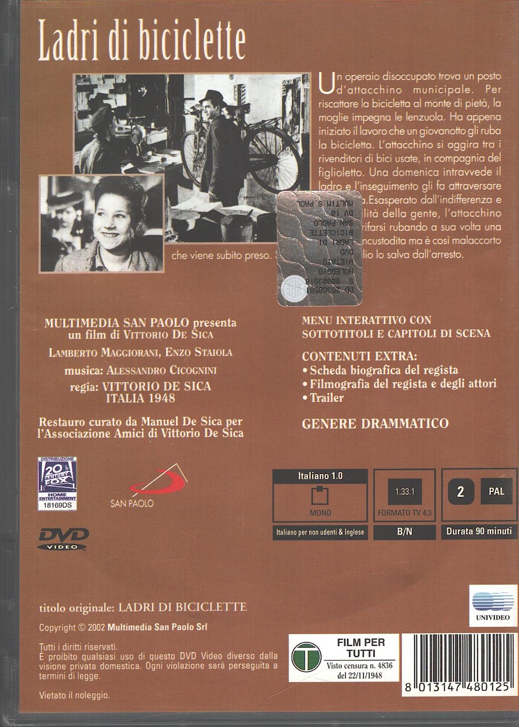 | Titolo: | Ladri di biciclette (Vittorio De Sica) – DVD in Italiano |