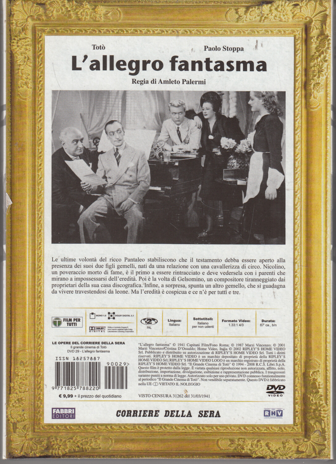 | Titolo: | L’allegro fantasma – DVD Il Grande Cinema di Totò (vol. 29) Collezione Oro – con Slipcase – Versione da edicola – DVD in Italiano |
