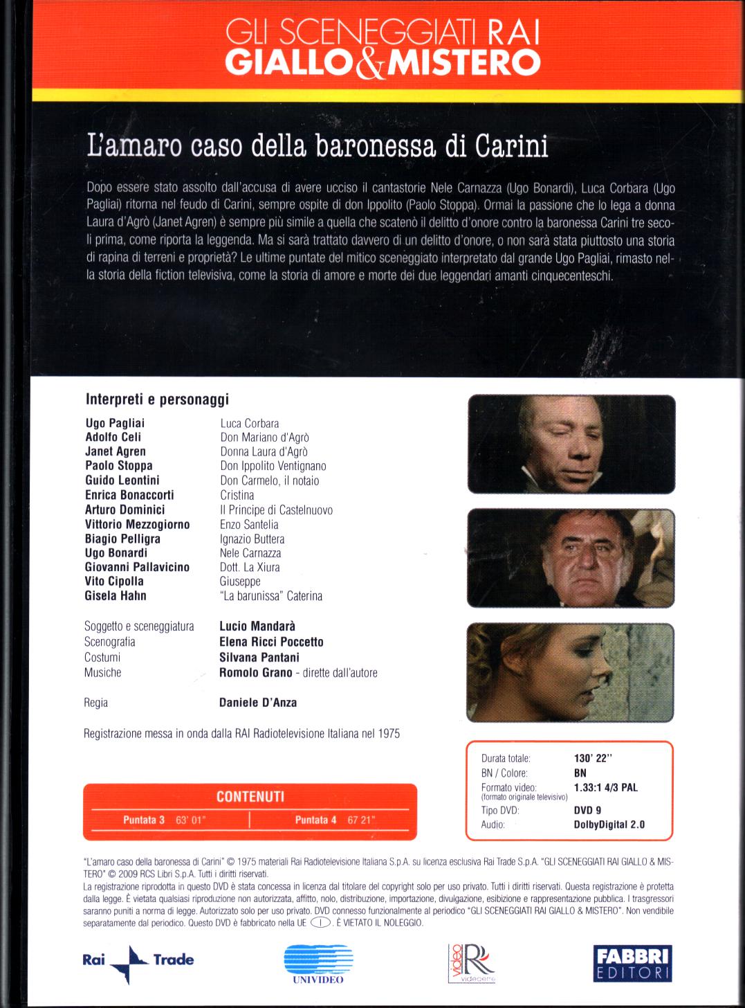 | Titolo: | L’amaro caso della baronessa di Carini – Miniserie TV DVD RAI (Episodi 3-4) Sceneggiati Rai Giallo & Mistero – Versione da edicola DVD in Italiano |