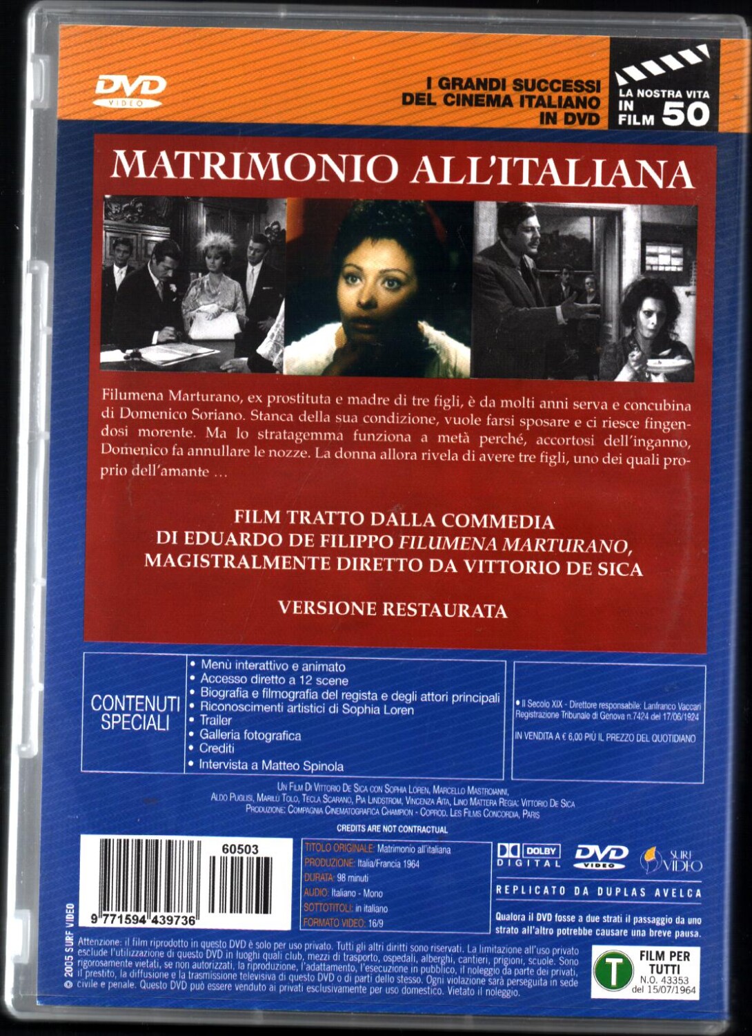 | Titolo: | Matrimonio all’italiana con Sophia Loren. Grandi Successi del Cinema Italiano vol. 13. DVD in Italiano. Versione da edicola |