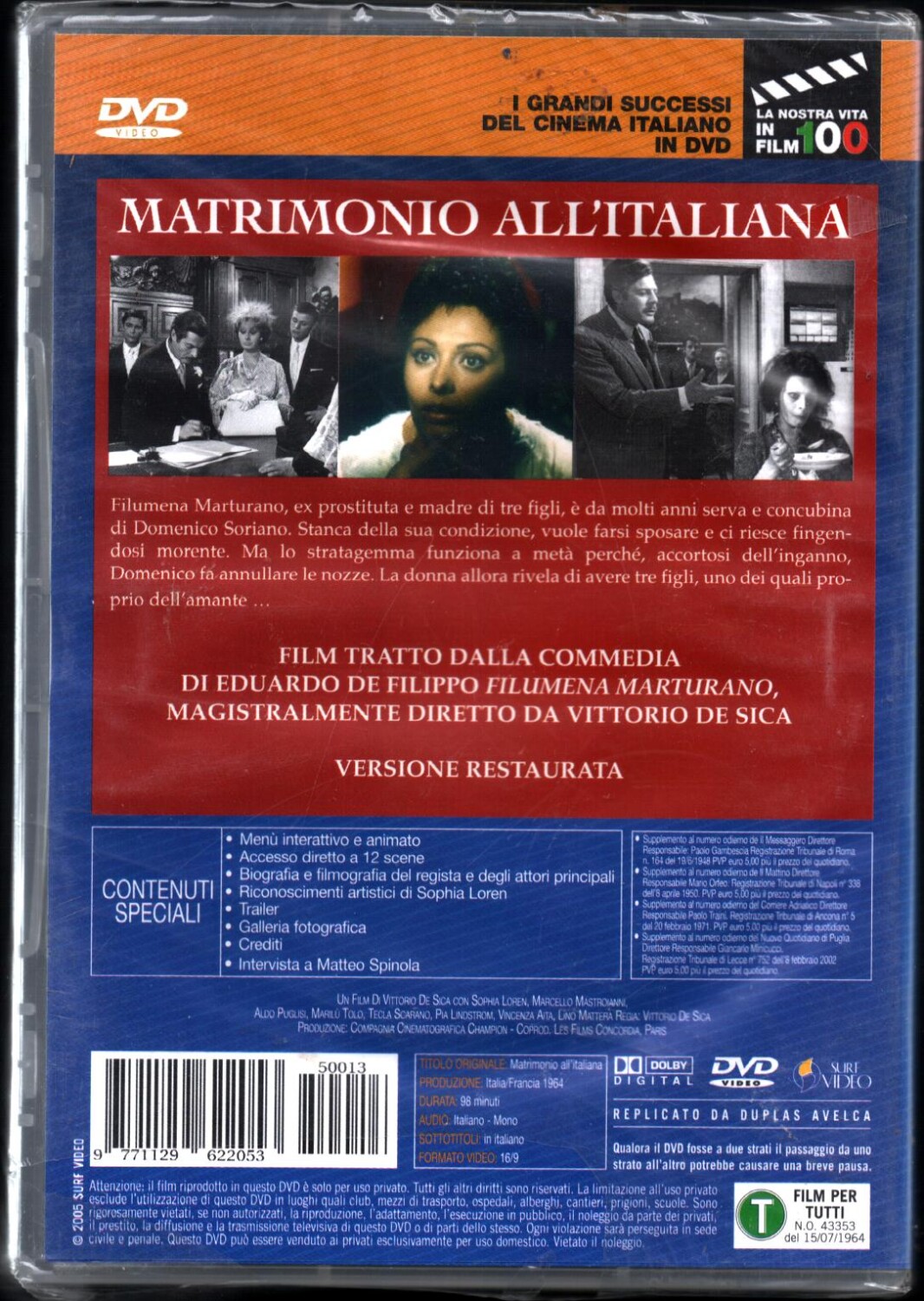 | Titolo: | Matrimonio all’italiana. I Grandi Successi del Cinema Italiano vol. 13. DVD in Italiano. Versione da edicola |