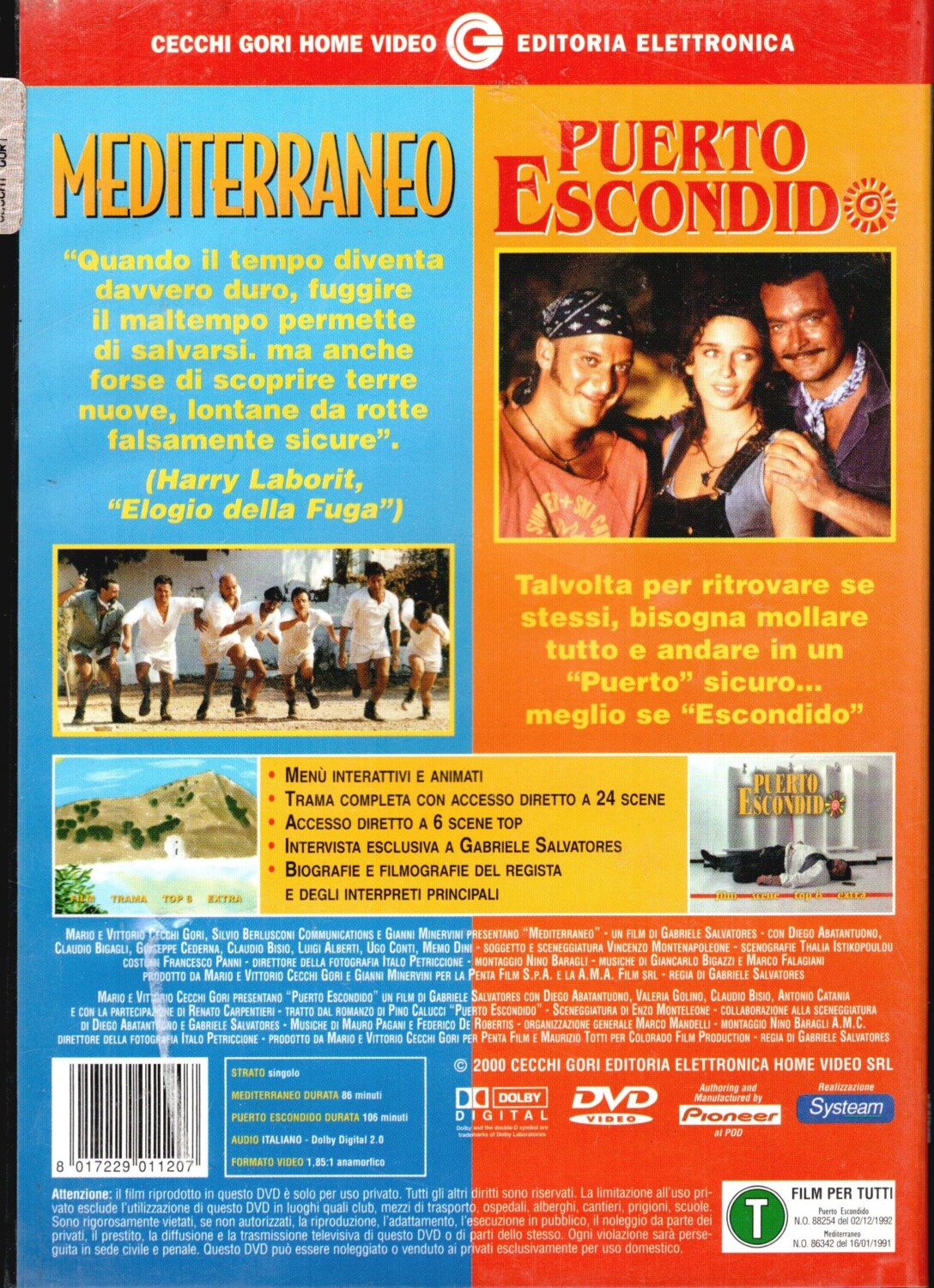 | Titolo: | Mediterraneo + Puerto Escondido DVD in Italiano ed. |