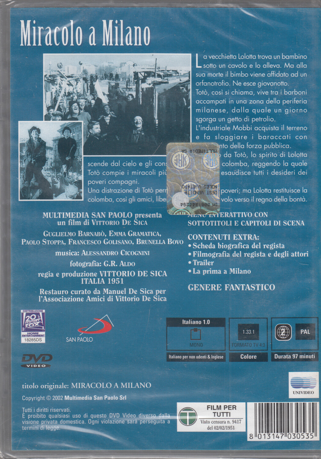 | Titolo: | Miracolo a Milano DVD in Italiano di Vittorio De Sica |