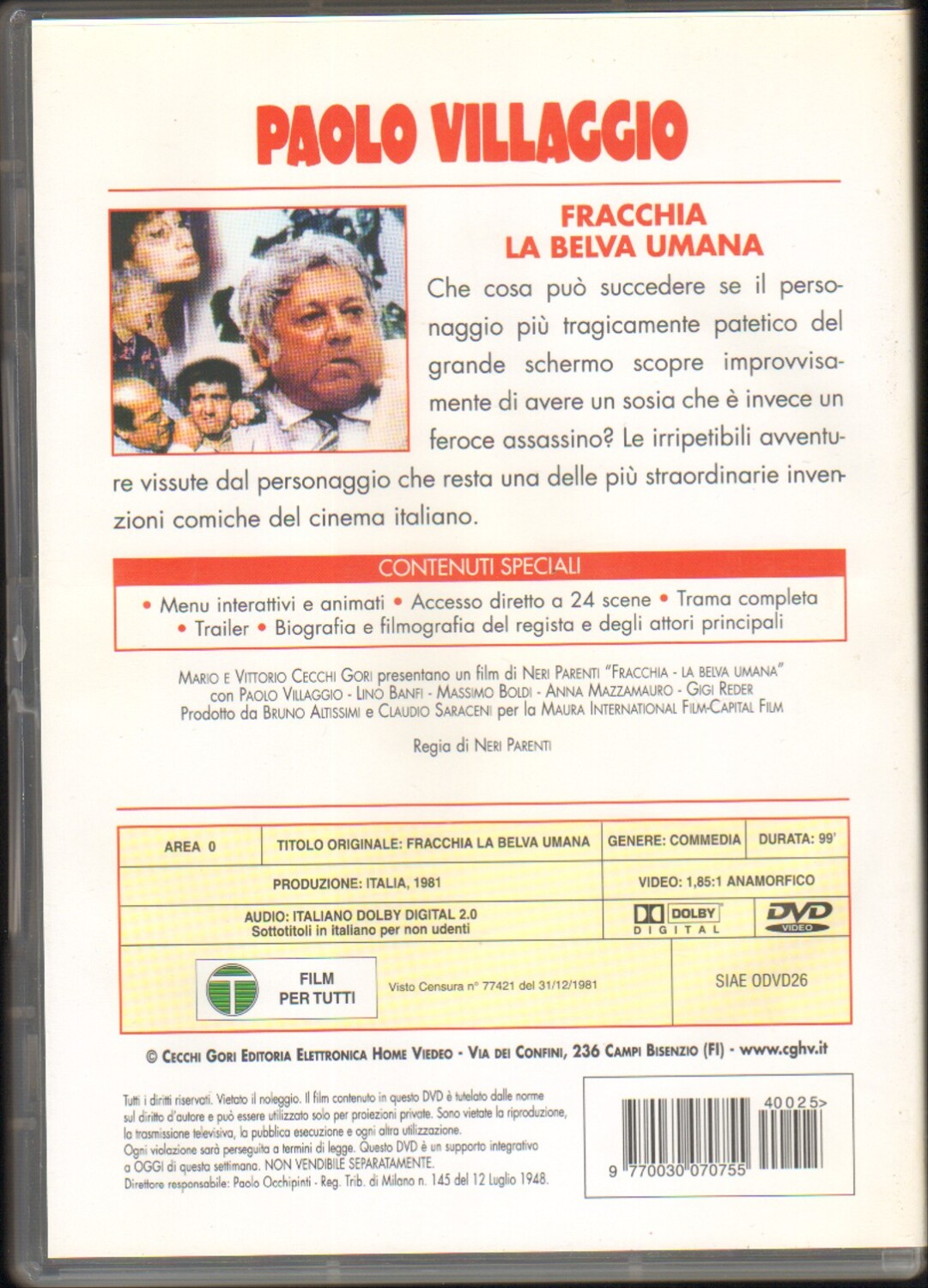 | I film inclusi sono: I pompieri – Fantozzi in Paradiso – Fantozzi alla riscossa – Fracchia la belva umana – Fantozzi va in pensione. | |