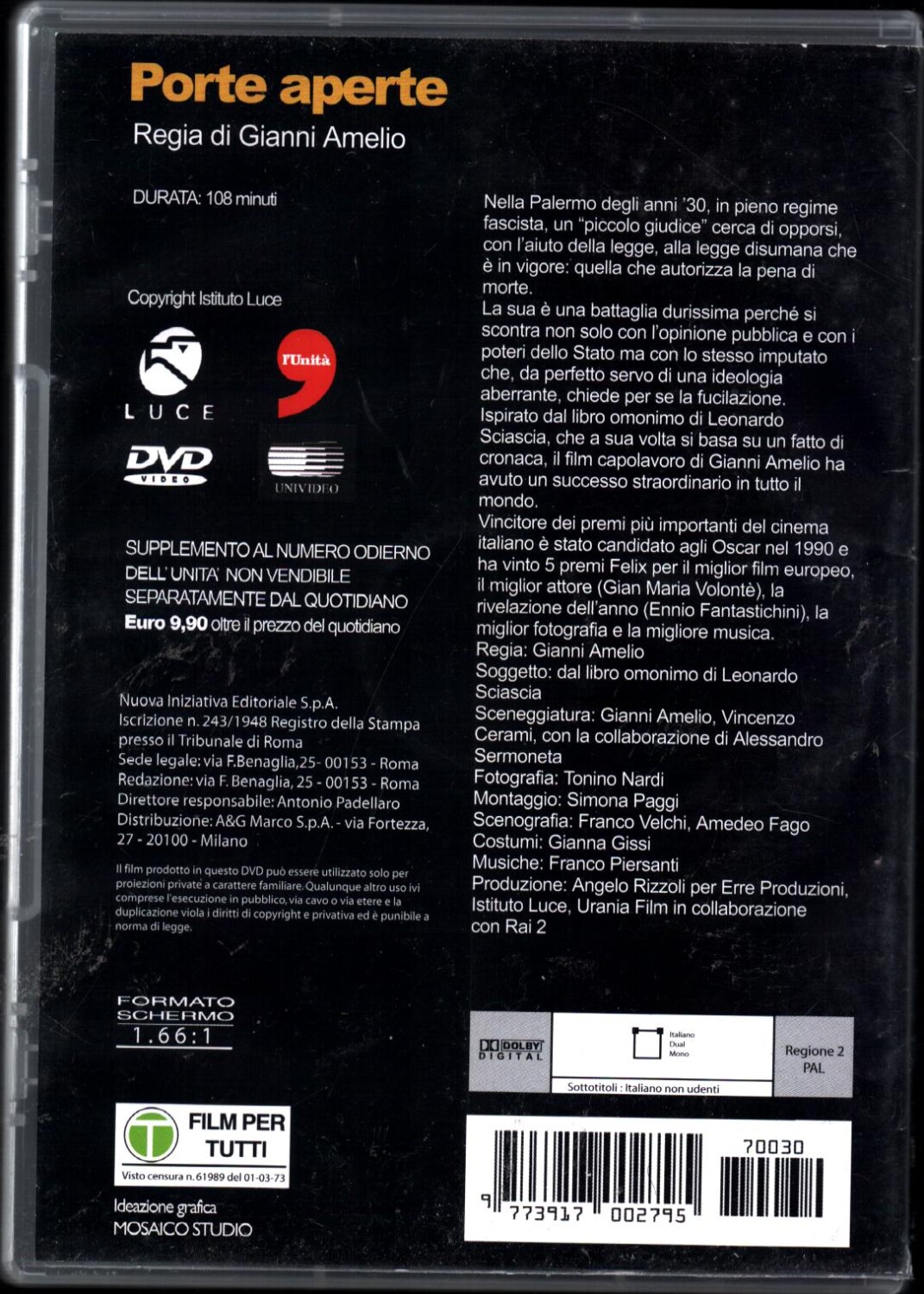 Porte aperte DVD in Italiano Gianni Amelio Versione da edicola