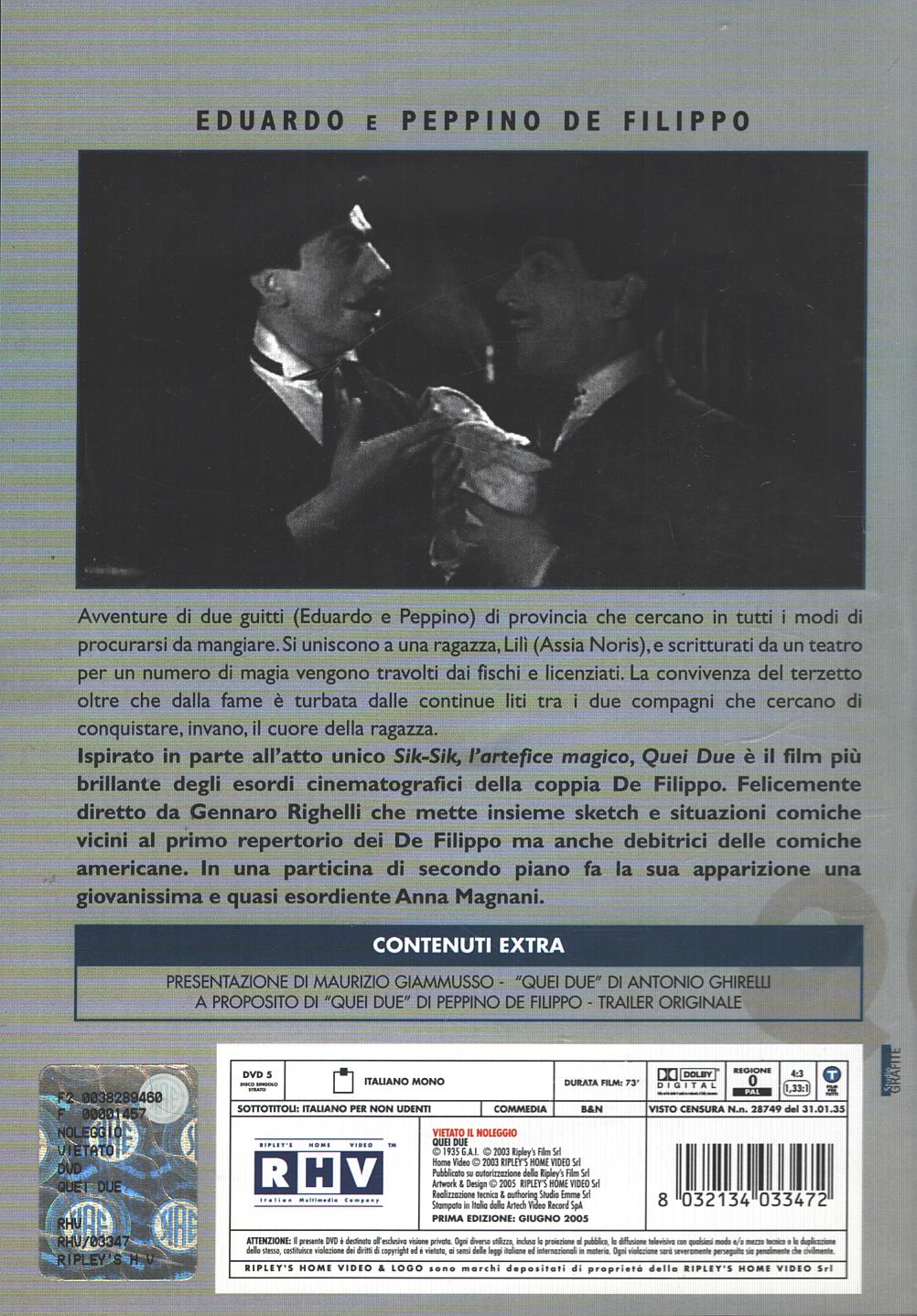 | Titolo: | Quei due (Edoardo e Peppino De Filippo) – DVD in Italiano |