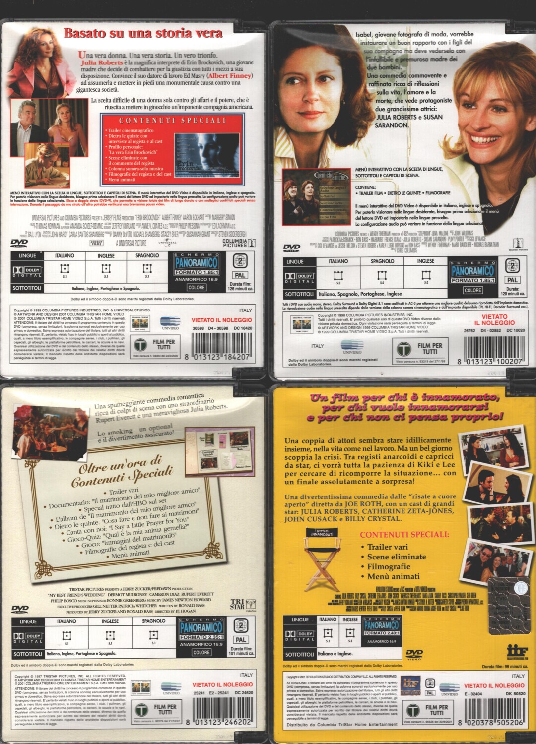 | Descrizione: | I film inclusi sono: Erin Brockovich, Nemiche Amiche, Il matrimonio del mio migliore amico, I perfetti innamorati. |