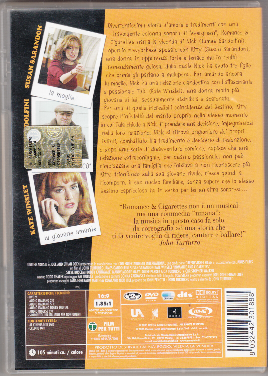 | Titolo: | Romance & Cigarettes con Susan Sarandon. DVD in Italiano. Versione Noleggio |