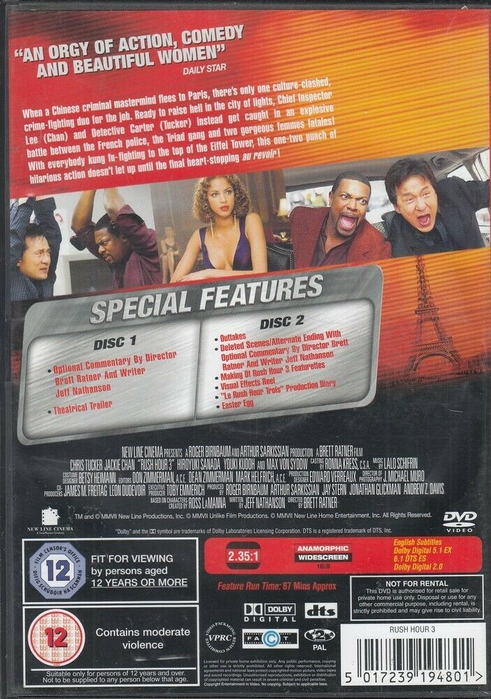 RUSH HOUR 3 con Tucker e Chan n. 2 DVD. Edizione Regno Unito