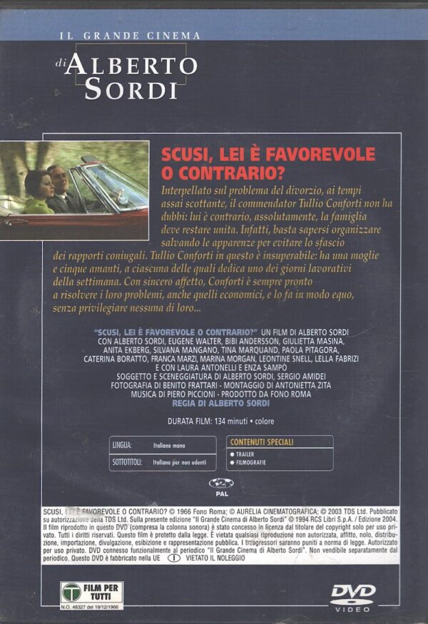 | Titolo: | Scusi lei è favorevole o contrario? – DVD Il Grande Cinema di Alberto Sordi – Versione da edicola – DVD in Italiano |