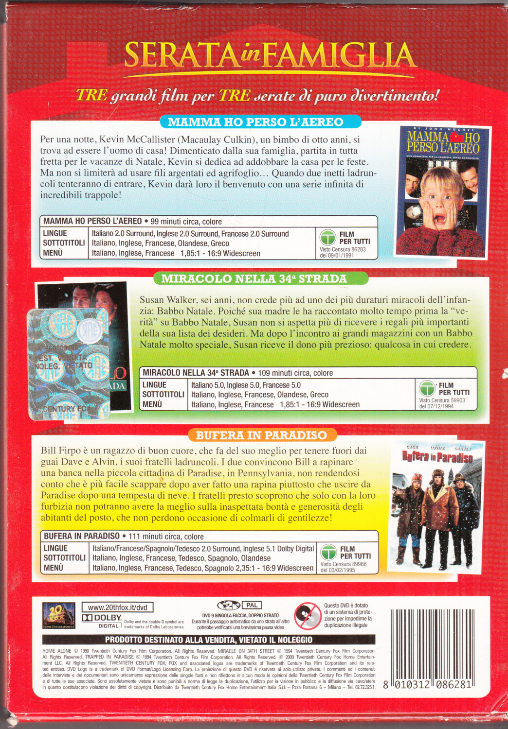 | Descrizione: | I film inclusi sono: Mamma ho perso l’aereo – Bufera in Paradiso – Miracolo nella 34 strada. |
