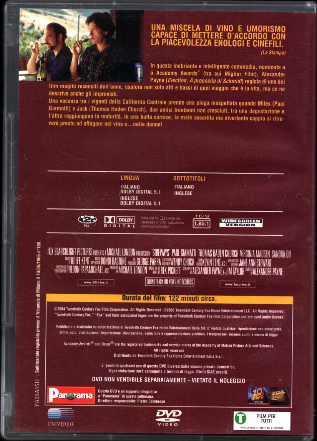 | Titolo: | Sideways Prima Visione- In Viaggio Con Jack DVD in italiano Versione da edicola |