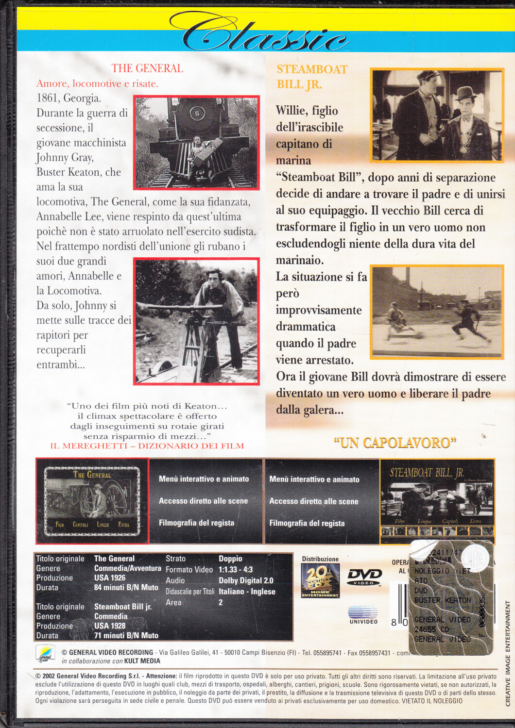 | Titolo: | The General, Steamboat Bill jr. Buster Keaton Collection con n. 2 DVD in Italiano ed. |