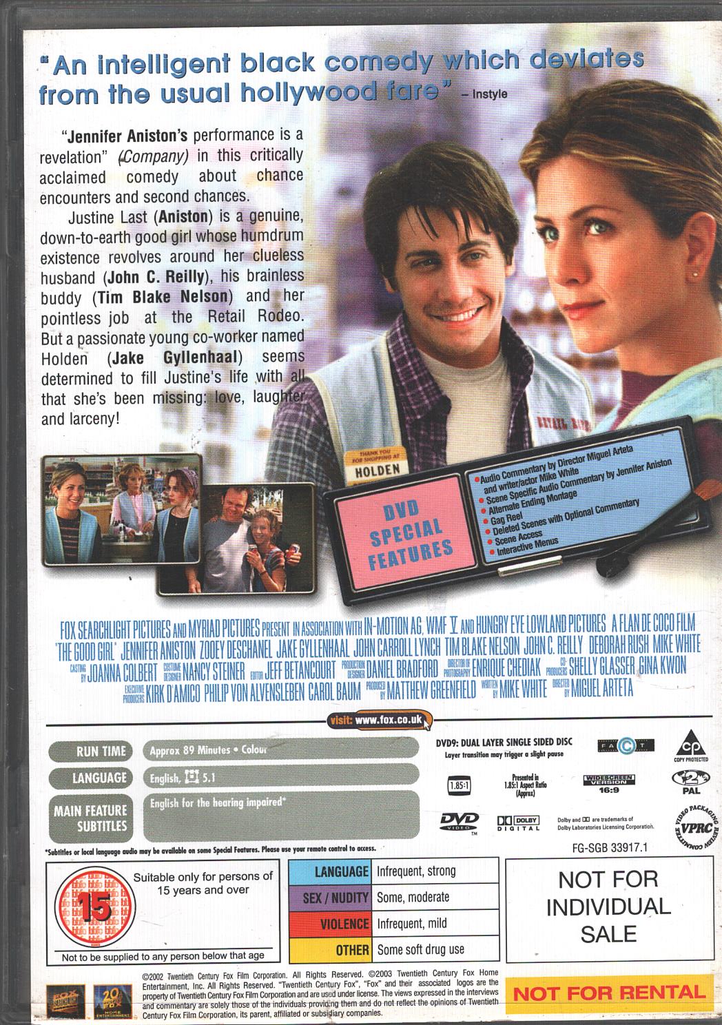 | Titolo: | The good girl (Jennifer Aniston) – DVD Edizione Regno Unito PAL Regione 2, Lingua Inglese |