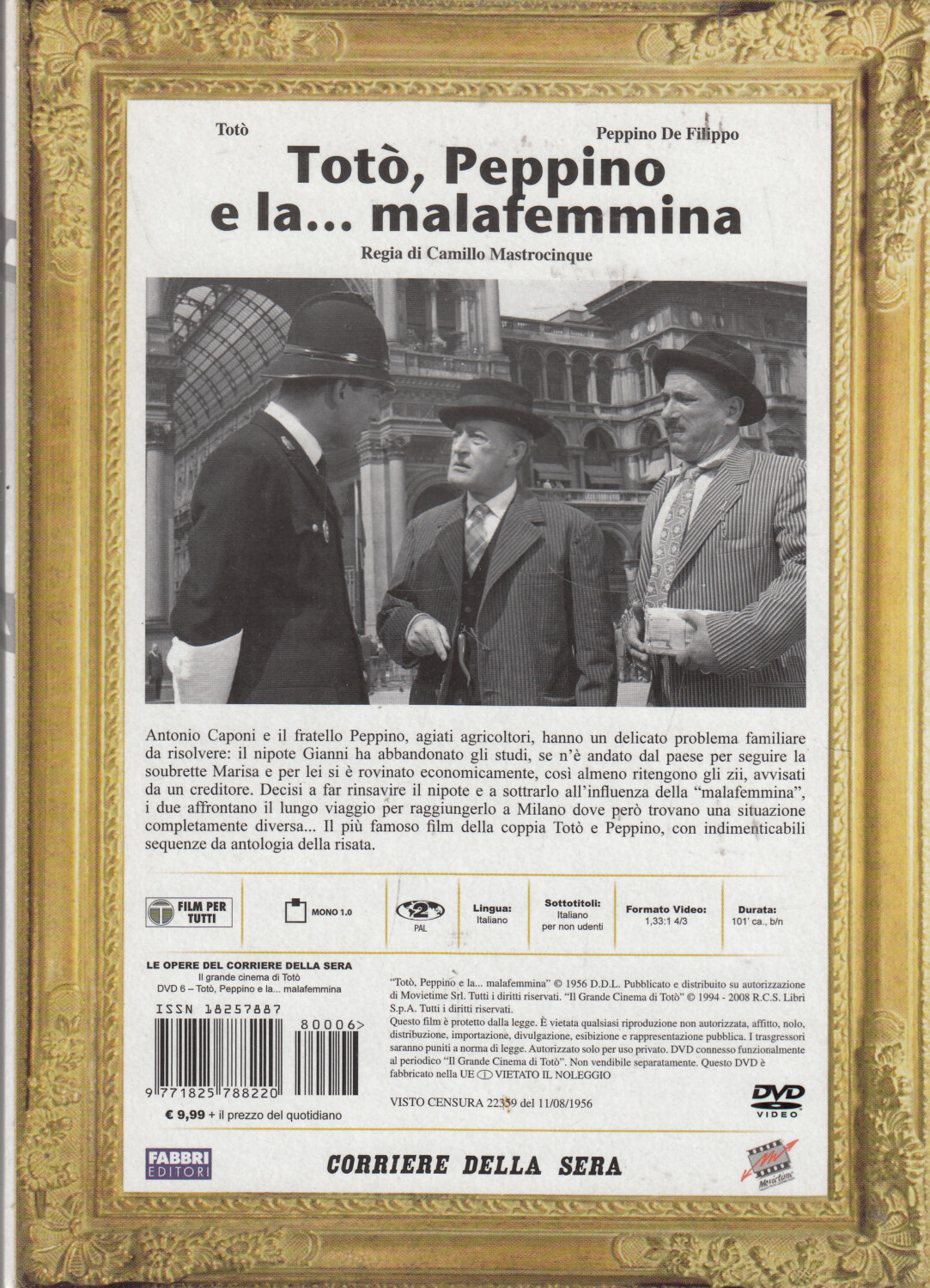 | Titolo: | Totò Peppino e la malafemmina – DVD Il Grande Cinema di Toto’ vol. 6 – con Slipcase – Versione da edicola – DVD in Italiano |