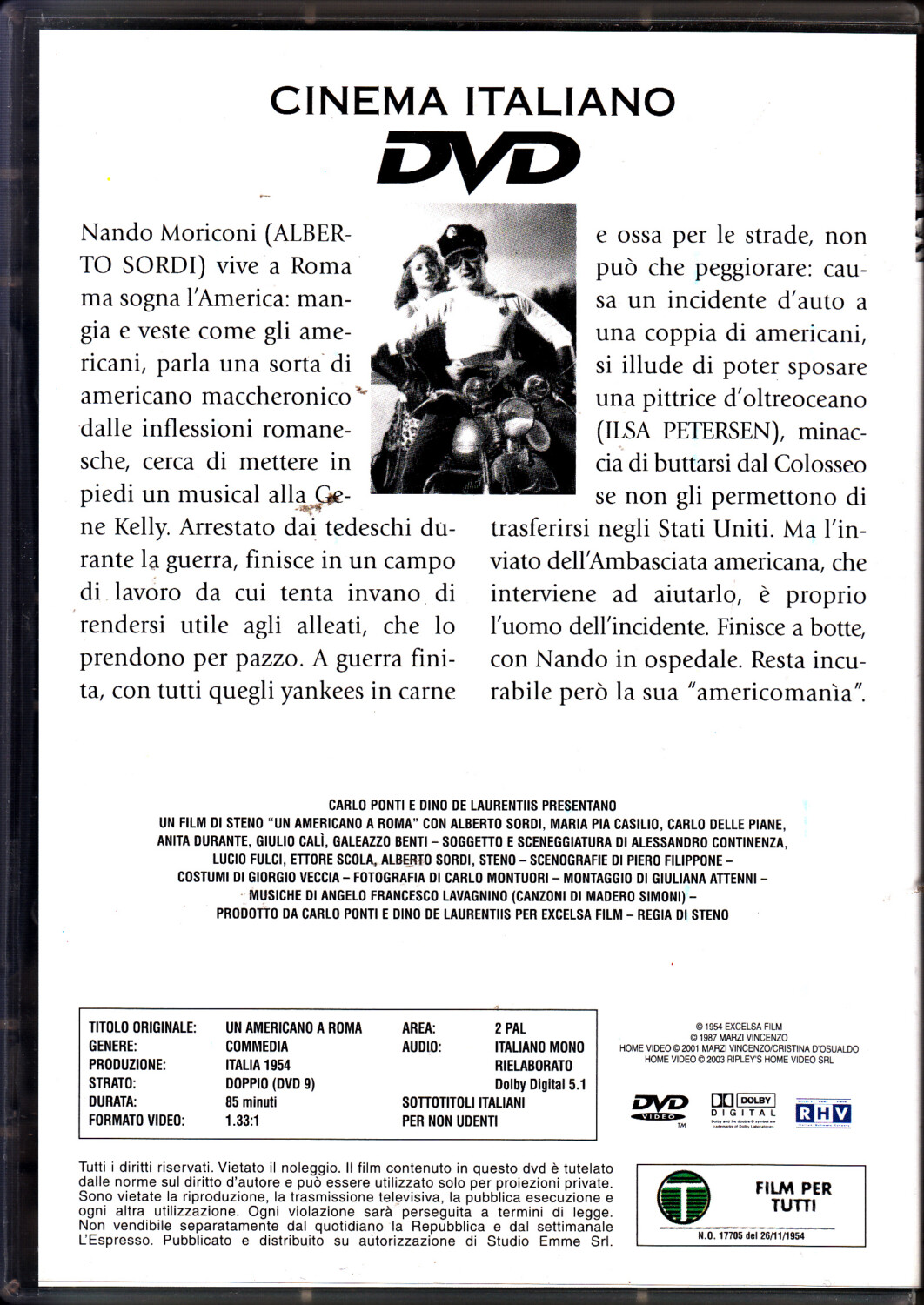 | Titolo: | Un Americano a Roma (Alberto Sordi) – DVD Cimema Italiano vol. 9 – Versione da edicola – DVD in Italiano |