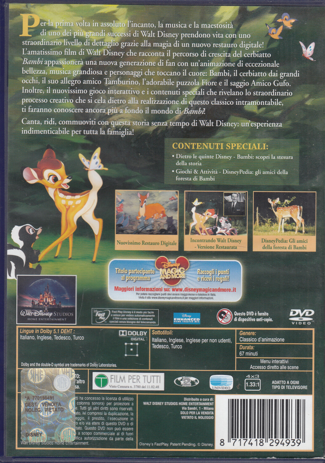 | Titolo: | Bambi (Walt Disney) – Edizione Speciale – DVD in Italiano – Senza Ologramma |