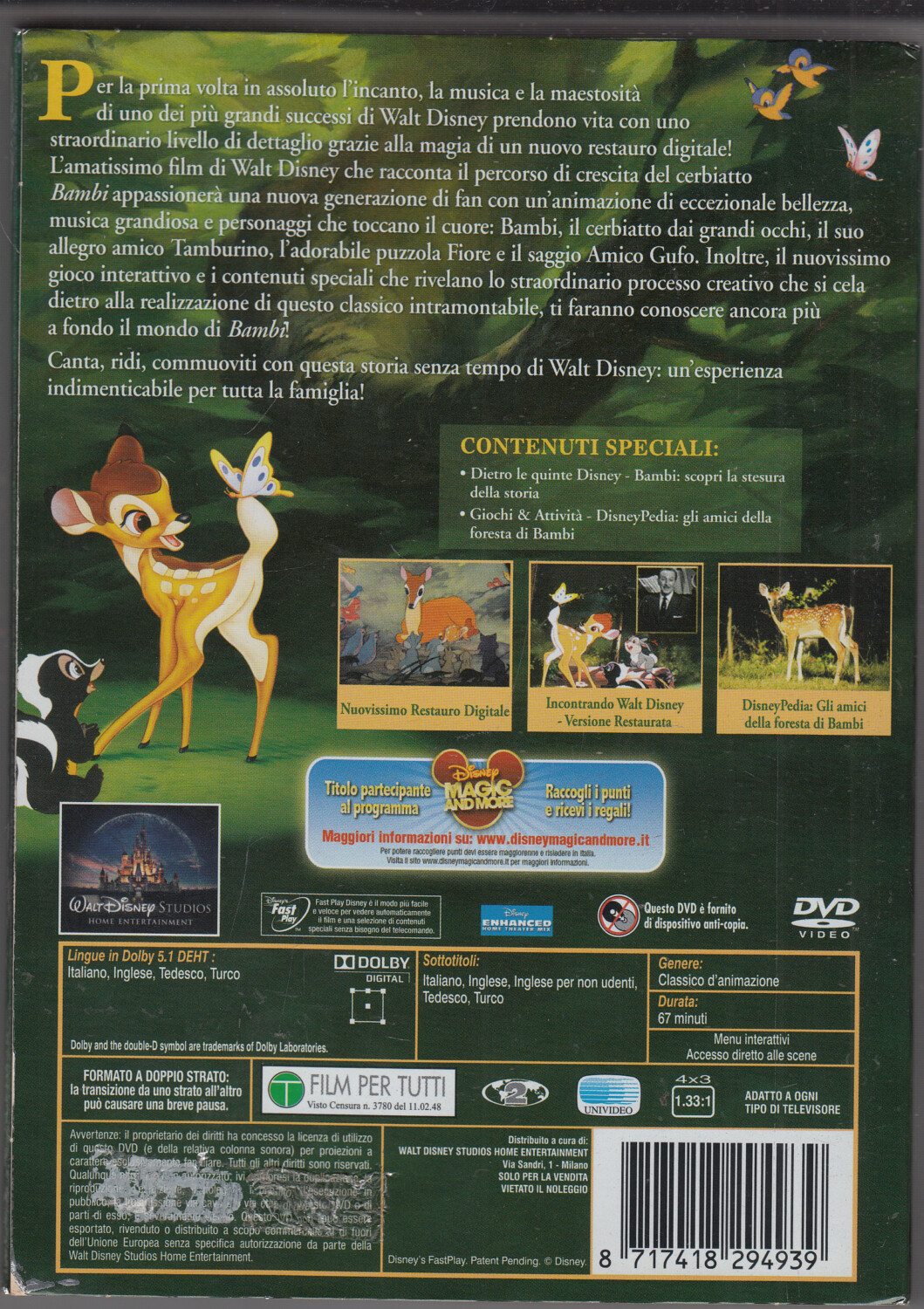 | Titolo: | Bambi (Walt Disney) – Edizione Speciale – con Slipcase – DVD in Italiano – Senza Ologramma |