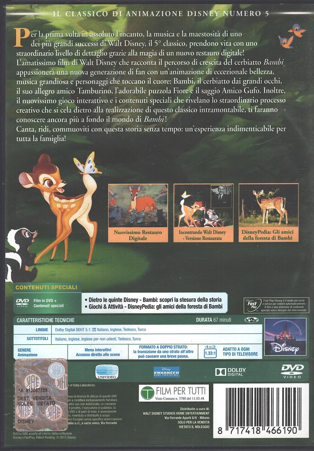 | Titolo: | Bambi – Walt Disney I Classici (vol. 5) SENZA Slipcase – DVD in Italiano |