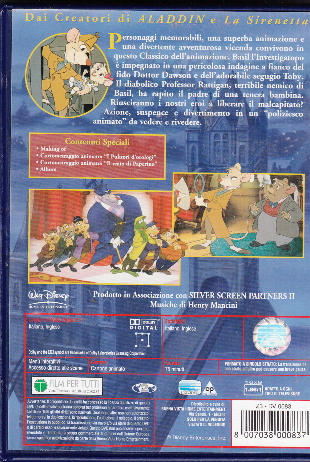 Basil l’investigatopo. Walt Disney I Classici. DVD in Italiano. Ologramma Tondo