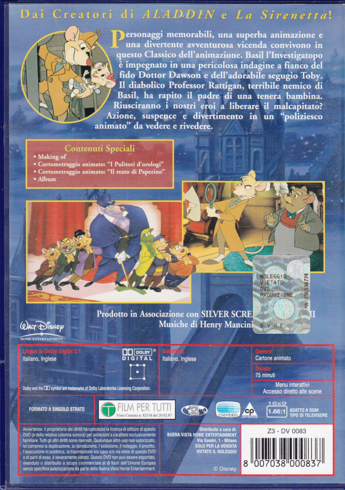 | Titolo: | Basil l’investigatopo. Walt Disney I Classici. DVD in Italiano. Ologramma Rettangolare |