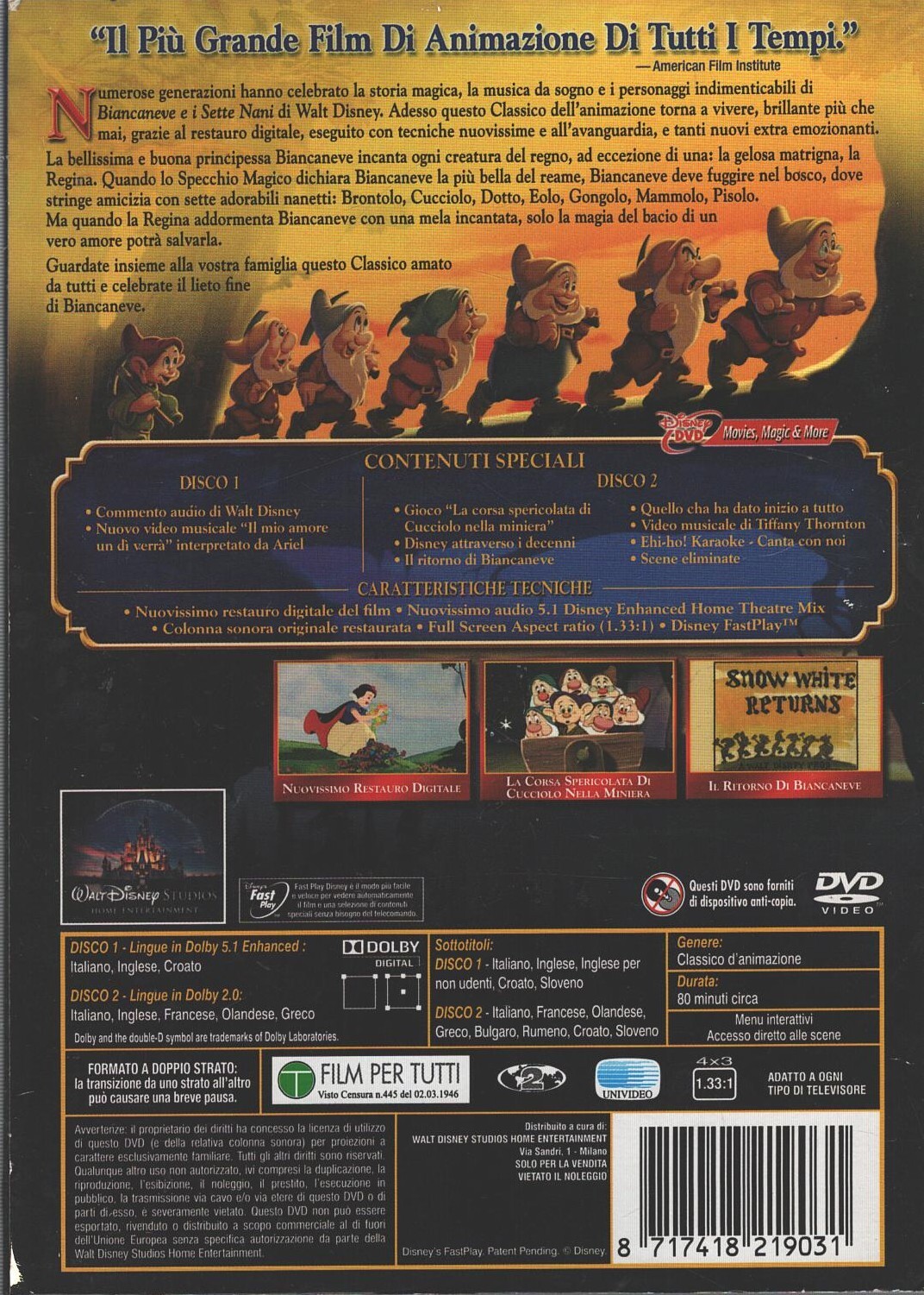 | Titolo: | Biancaneve e i sette nani (Disney) Edizione Speciale (2 DVD) con Slipcase – DVD in Italiano (Senza Ologramma) |