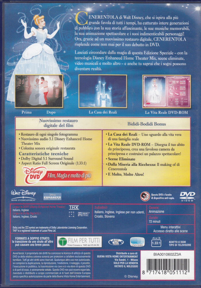 Cenerentola Edizione Speciale Walt Disney DVD in Italiano. Ologramma Rettangolare