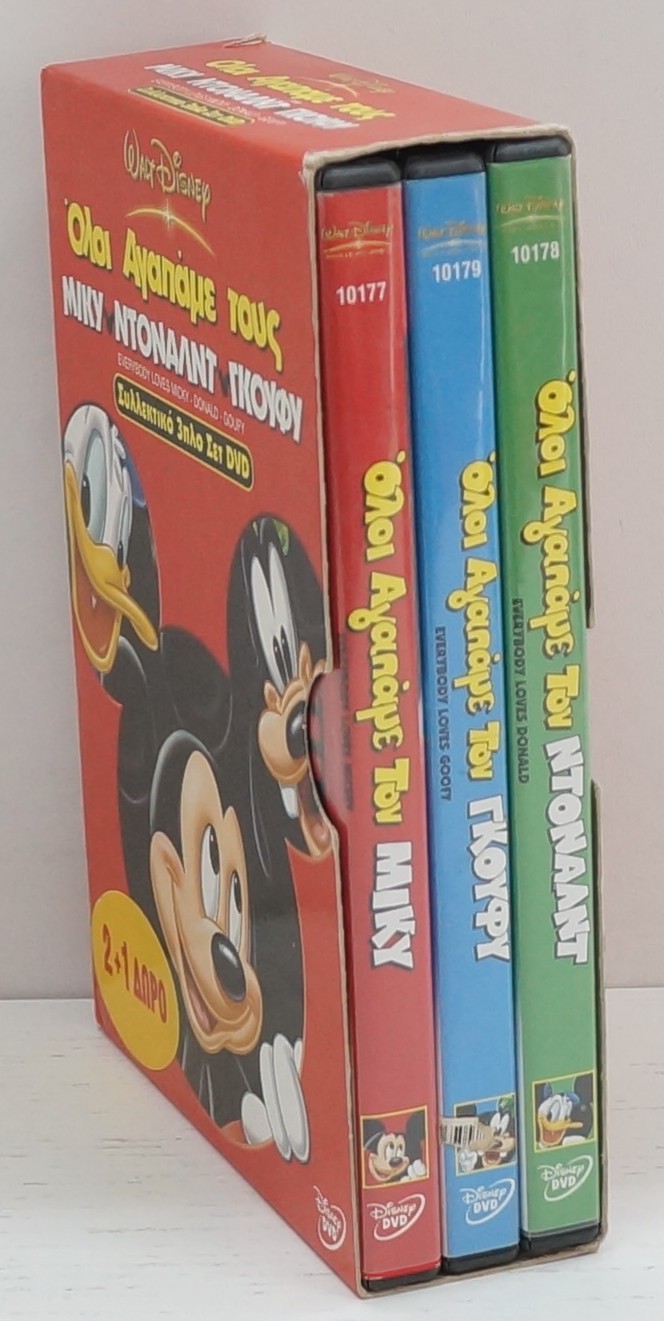 | Titolo: | Everybody loves Mickey Donald Goofy. Tutti amiamo Mickey Donald Goofy. Raccolta n. 3 DVD Edizione Grecia PAL Regione 2, Lingua Greco, Inglese incluso |