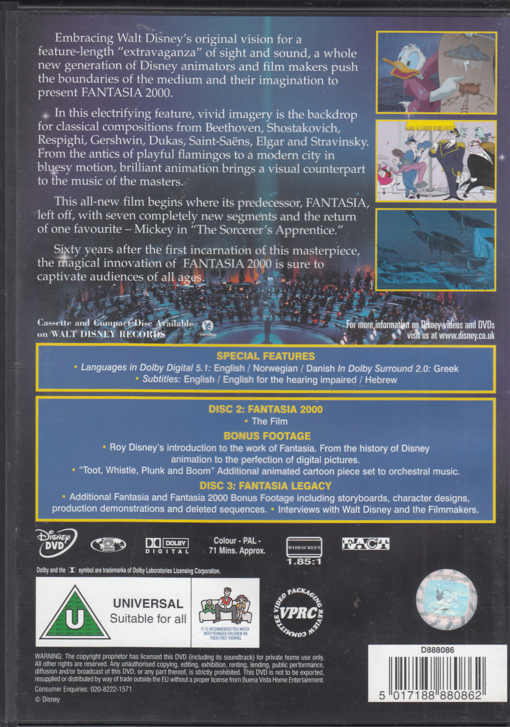 Walt Disney: Fantasia 2000. DVD in Inglese Ologramma tondo