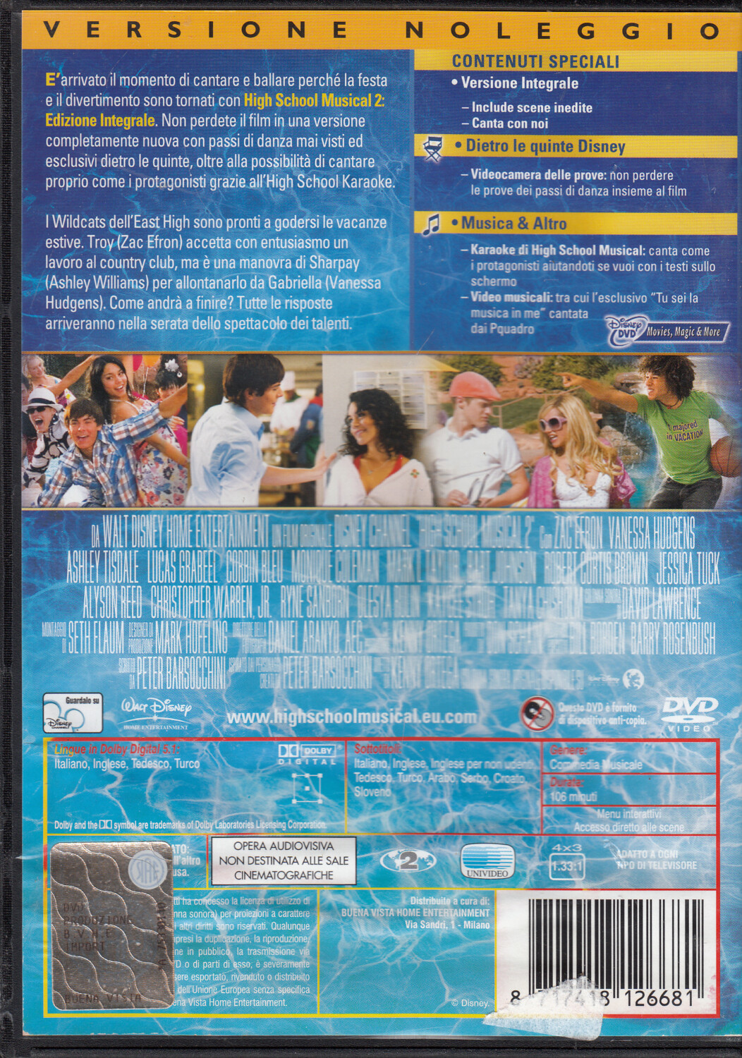 | Titolo: | High school musical 2. DVD in Italiano. Versione Noleggio |